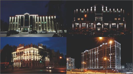 - Освещение фасадов здании с сохранением его структуры
